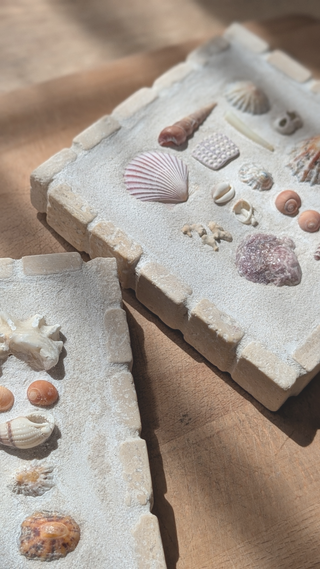 Chaque coquillage est incrusté avec minutie, formant un tableau vivant qui évoque la sérénité et la beauté sauvage des côtes bretonnes. Ces créations incarnent la douceur d’un moment partagé, le plaisir des découvertes simples et l’esprit de liberté des vacances au bord de l’océan.